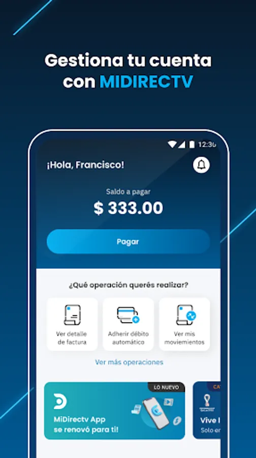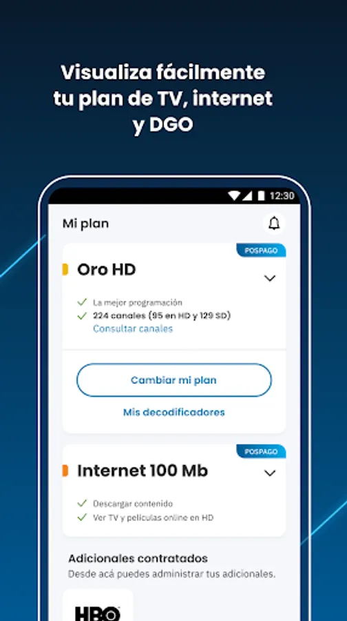 If you are a DGO customer, you can now enter the MiDIRECTV APP and see your billing details, pay for your service, contract additional services and much more.