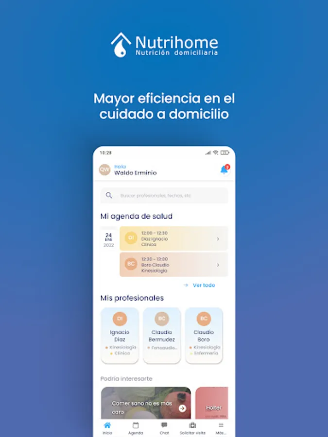 We contribute to the recovery and comfort of patients. You can check your agenda, confirm or reschedule visits and communicate quickly and easily with professionals