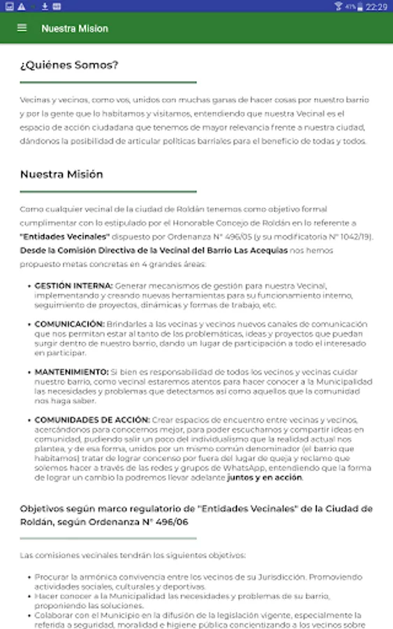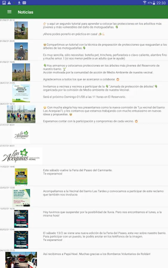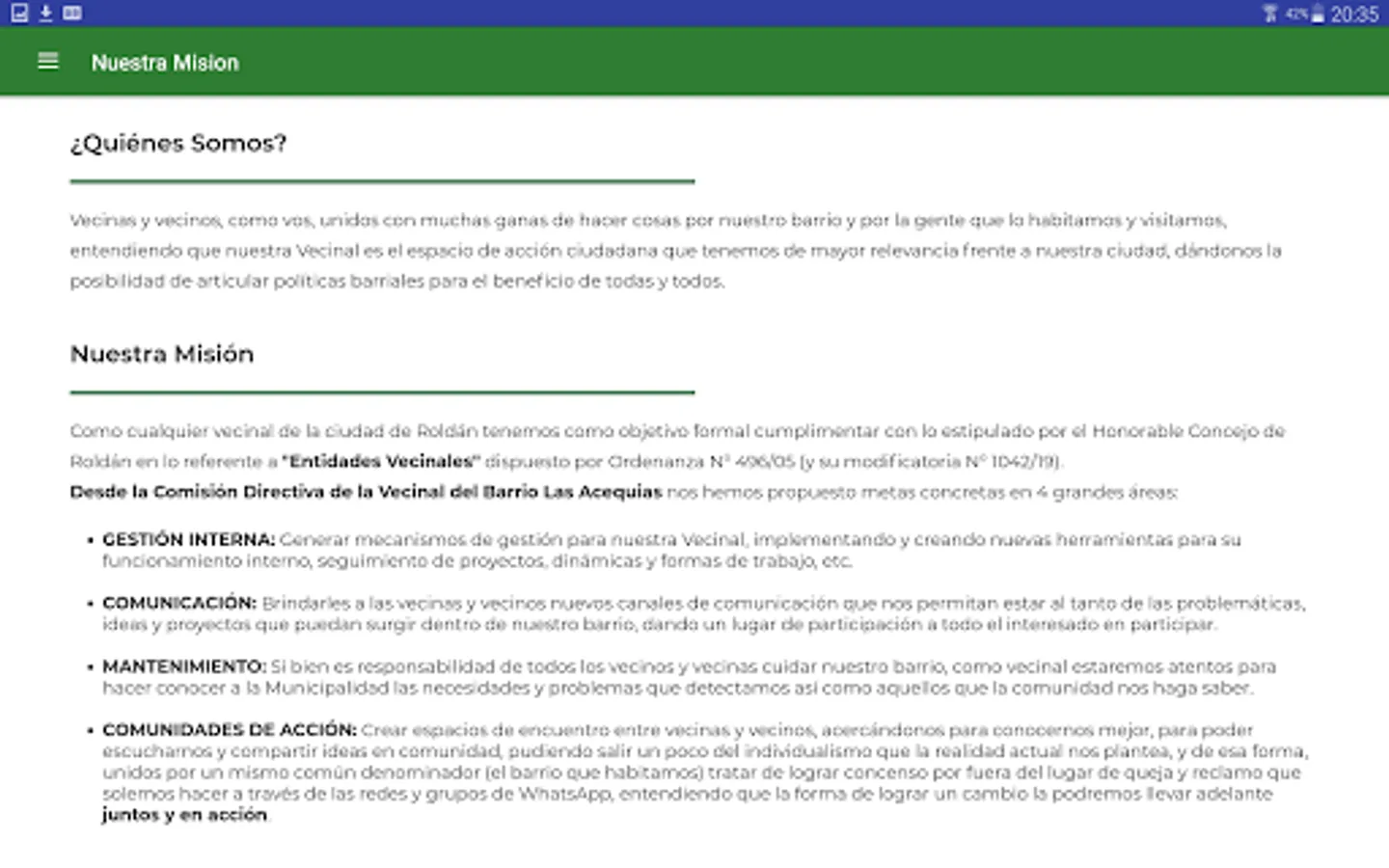 From the Neighborhood of the Las Acequias de Roldán neighborhood, we intend to create meeting spaces between neighbors, getting closer to know each other better, to be able to listen to each other and share ideas in community.
