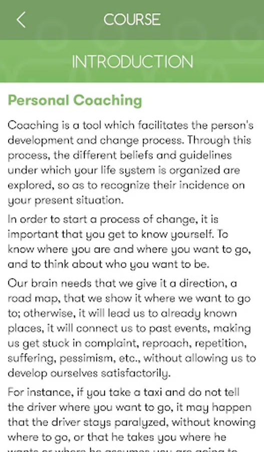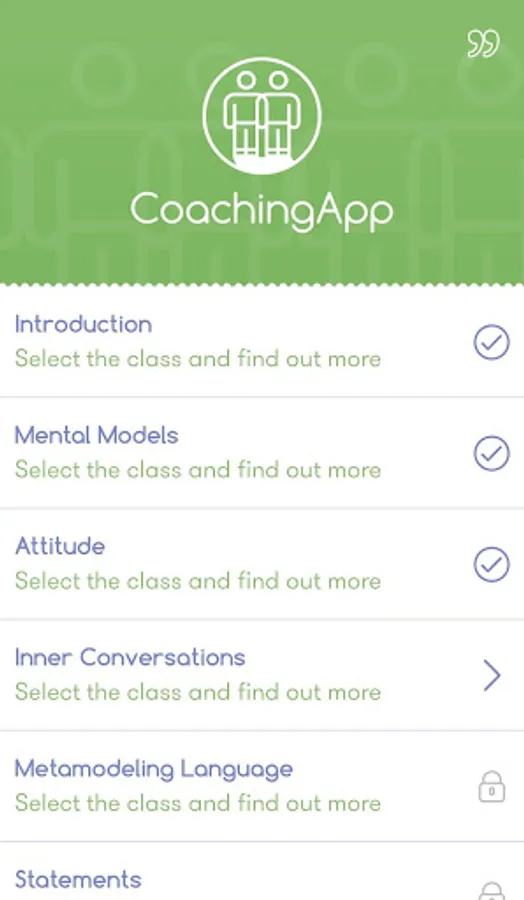 In this APP you can find Personal Coaching lessons oriented to personal transformation and achievement of goals.