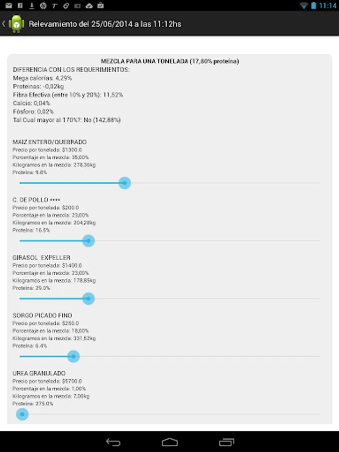 - Allows recalculated by moving bars modifying active dry matter, protein and expressed Mcal and informs achieved if consistent with the requirements