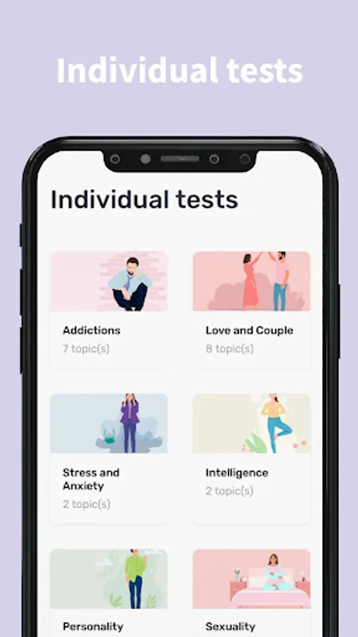 This APP contains psychological tests about several issues that patients often consult to every professional in Psychology. Its content is simple to understand and very useful. You will be able to learn, consult, and evaluate many characteristics about your personality and also if you suffer from anxiety disorders, mood disorders, eating disorders, addiction problems, etc. In addition, there is helpful information about love, related subjects about relationships, about who you are and how your psyche works.