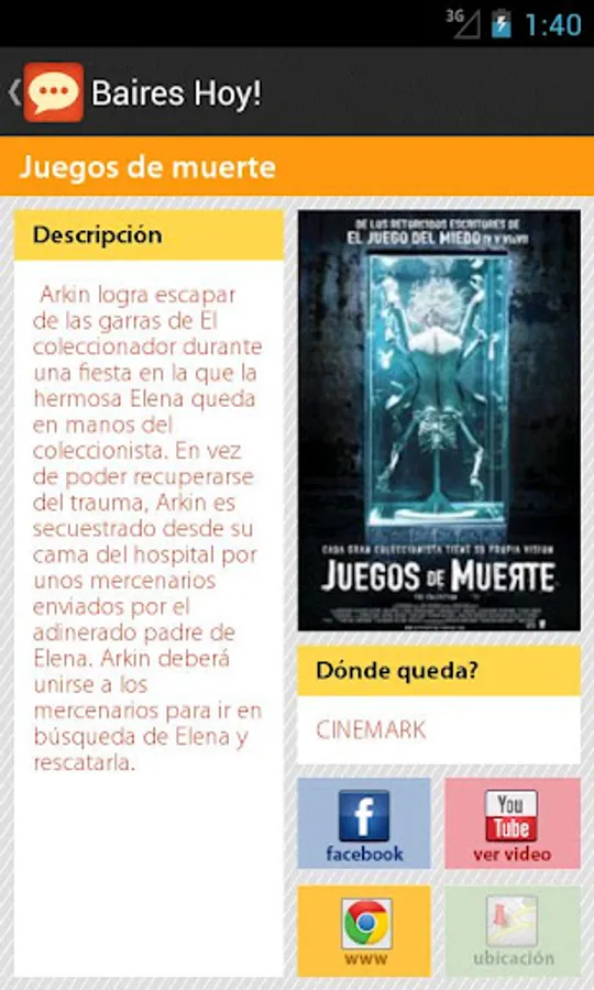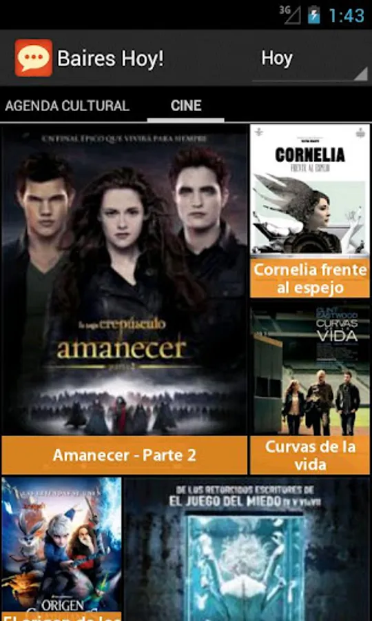Baires Today! allows you to access all the information on shows, entertainment, sporting and cultural events of the City of Buenos Aires. Also you can watch the movie listings to date with all the premieres and movie poster, their trailers and synopsis.