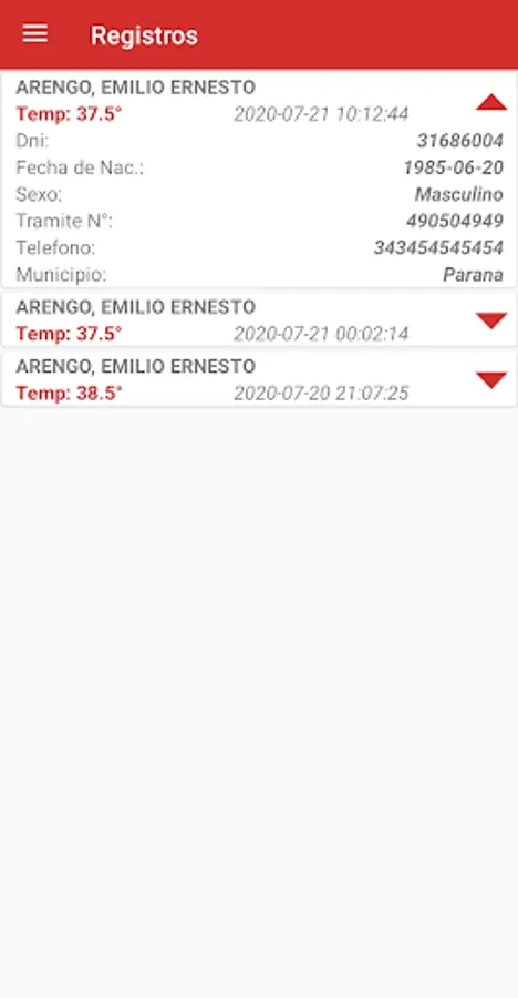The application allows in just a few seconds to record the data of people who pass through a control. Use the camera of the cell phone to read the QR code of the cell phones and from there take all the data. It also allows you to read the QR code of the permissions for verification. The data is saved in the user corresponding to the municipality and then it can be reviewed from the App, and it can be downloaded in Pdf or Excel files.