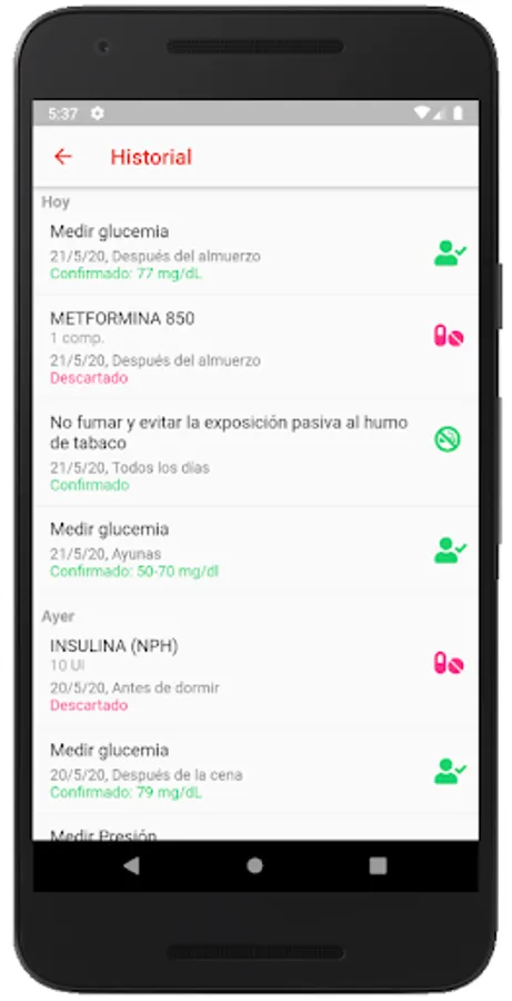 You can confirm the events associated with your medications, controls and indications, and obtain detailed information about them. Record your measurements, perform your self-monitoring and obtain statistics.