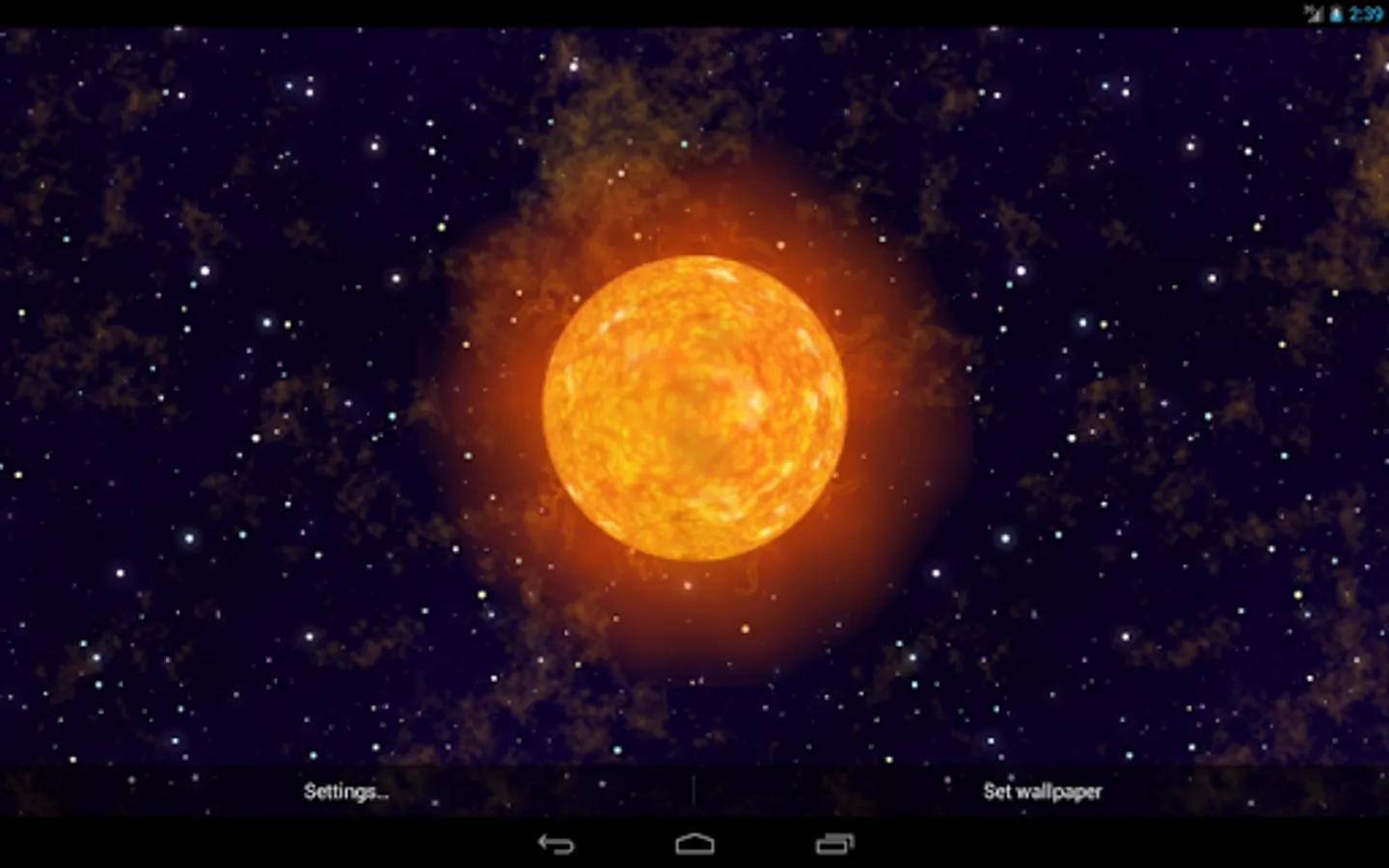 Solaris Live Wallpaper gives you a full detailed view of a star similar to our Sun.
