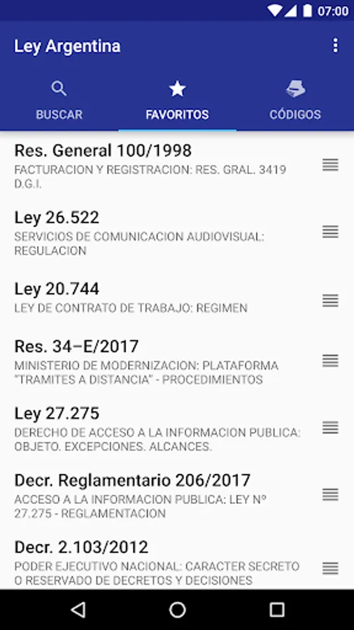 • You can mark laws, decrees, etc. as favorites to have them well at hand and these are easily rearranged.