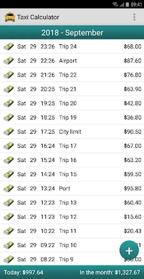 Free App that allows a taxi driver to control the income that gets from every trip in a taxi and to get different charts about how much money was made by hours or month.