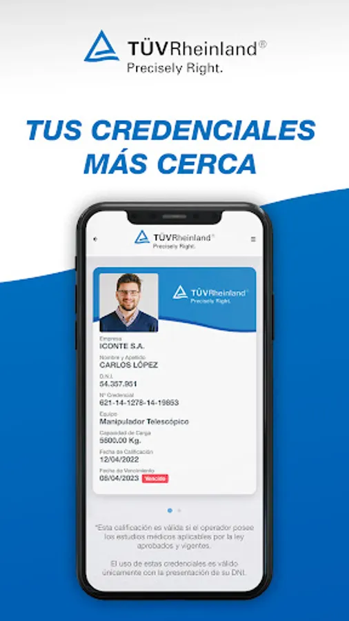 Through this digital credential APP we propose a way to validate the accreditations of operators certified by TÜV Argentina.