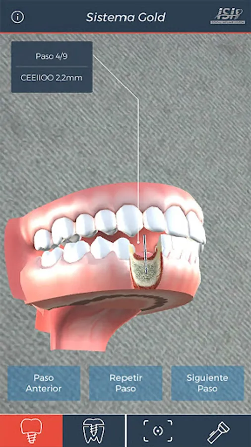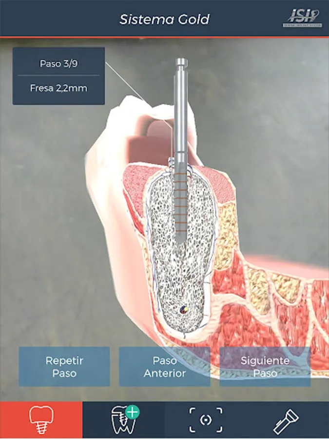 ISI Dental allows you to preview the Gold implant process through animations. In addition, the configurable module can be purchased, step by step of the MSJR implant process.