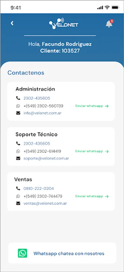 Application for Velonet customers, where they can see their account statement, the latest bills, pay them, make claims and much more!