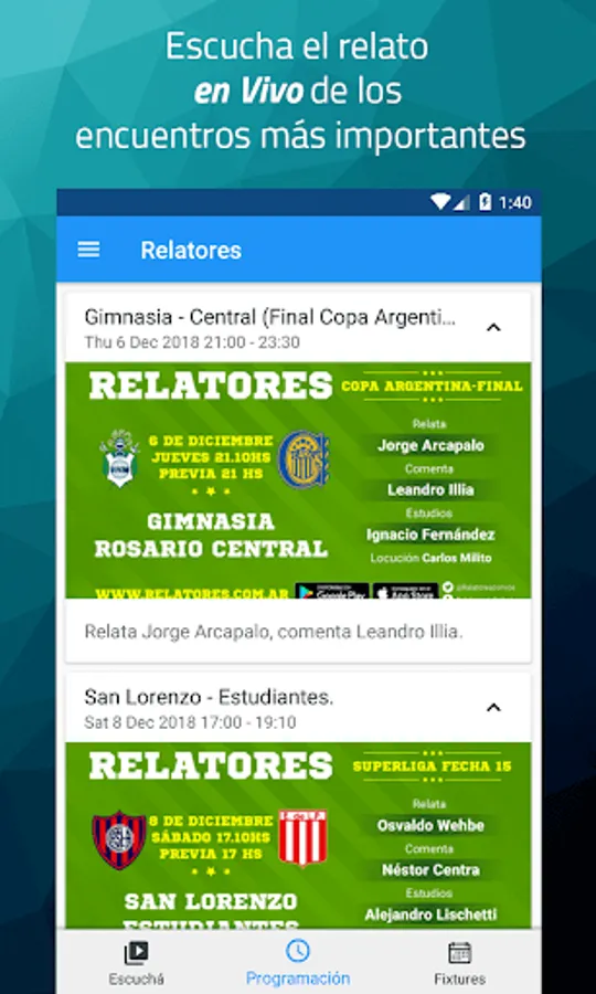 Rapporteurs puts in your hands and ears the stories of the most important in the voice of Victor Hugo Morales and his team matches. Moreover, it makes football alive on your phone without you stay out of any news. Rapporteurs, football goes with you.