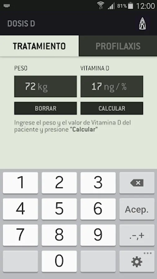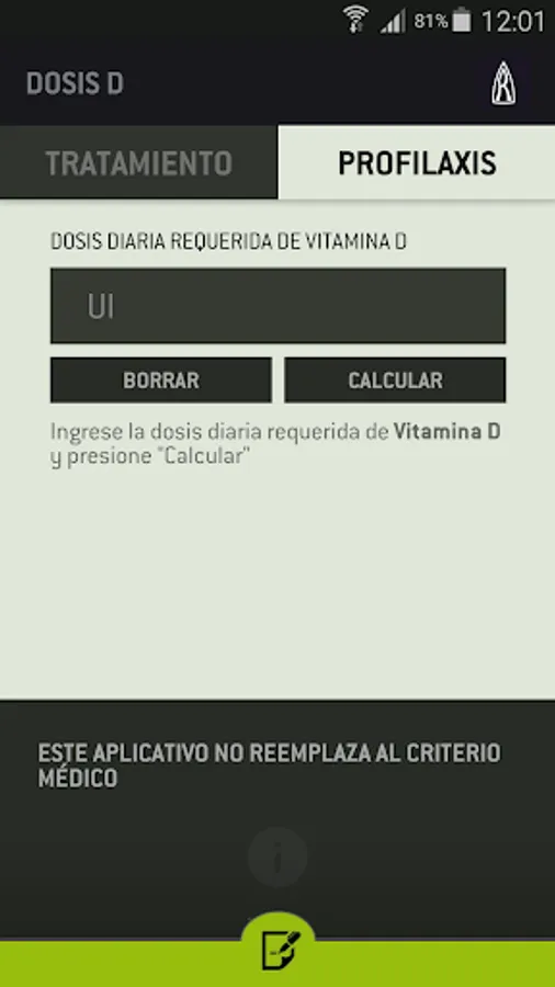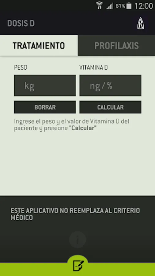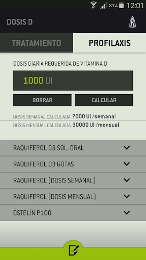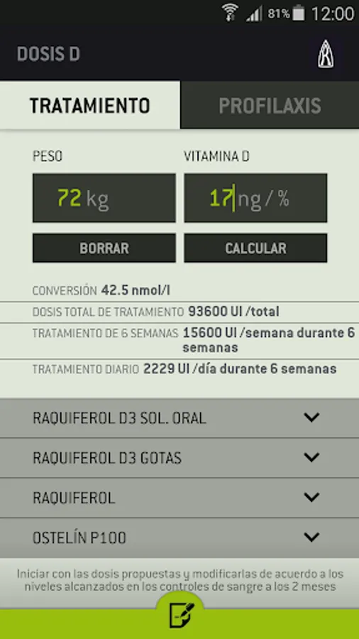 This material is intended solely for use by doctors. The "Dose D" application has been developed by Roemmers. It is aimed at health professionals offering guidance on dose calculation dosage of vitamin D in treatment regimens and / or prophylaxis according to the underlying pathology. The full prescribing information is available in the prospectus included in the app or on the website of www.roemmers.com.ar laboratory. Upon the occurrence of an adverse event involving a product of Laboratorios Roemmers S.A.I.C.F. , Please call the area "Information professionals and users" 0800-333-5658