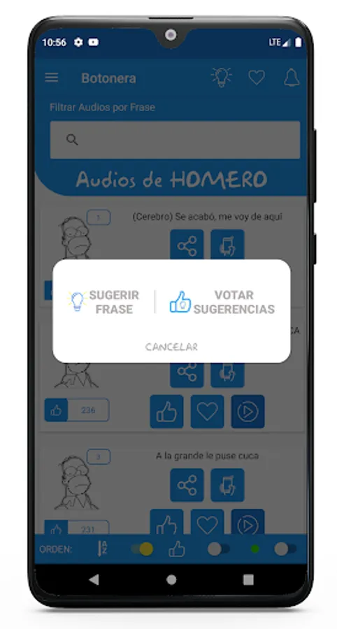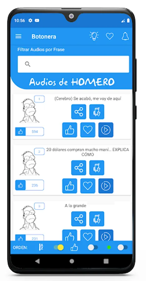 Make your own selection, sending the audios that you like the most to your favorites. Thus, you will always have your Simpsons phrase ready to be shared.