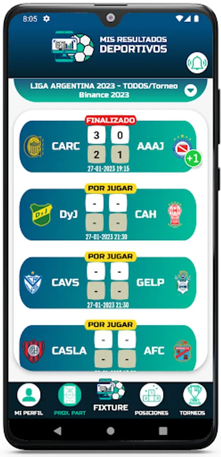 Currently, our application includes Argentine sports competitions, but we are working to add European and American sports competitions in the near future. This will include the Spanish League, the English League, the Champions League and South American club competitions such as the Copa Libertadores and Copa Sudamericana.