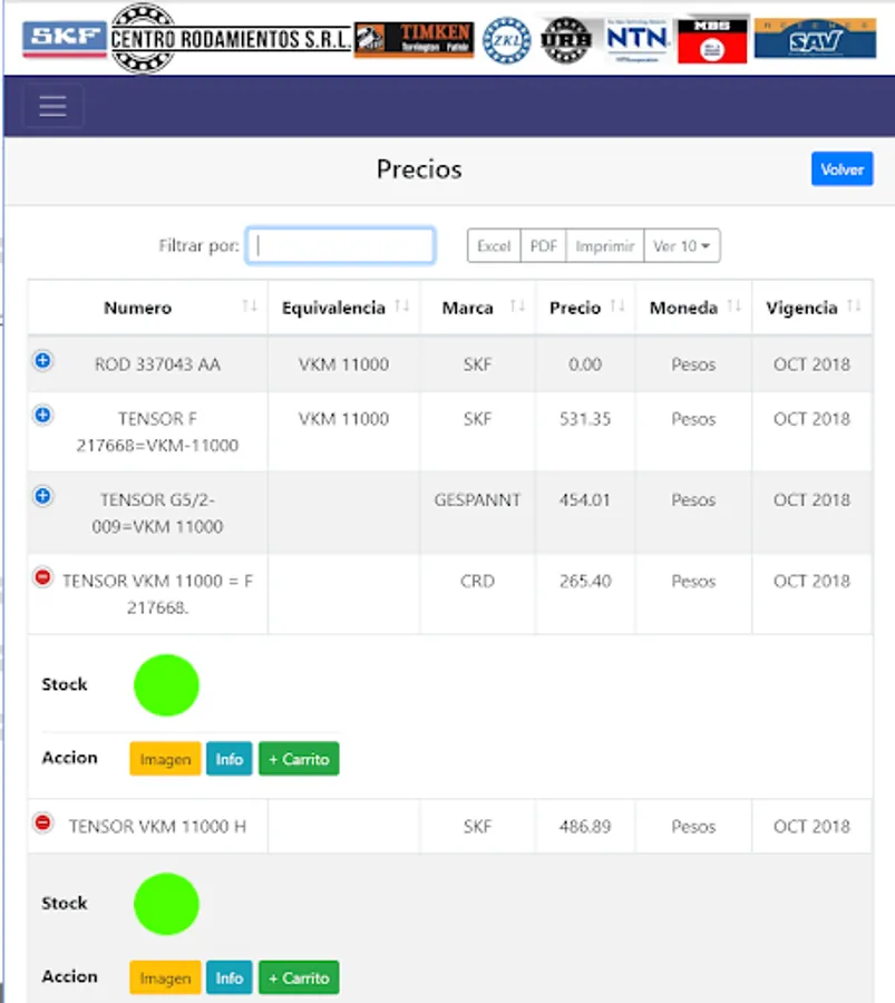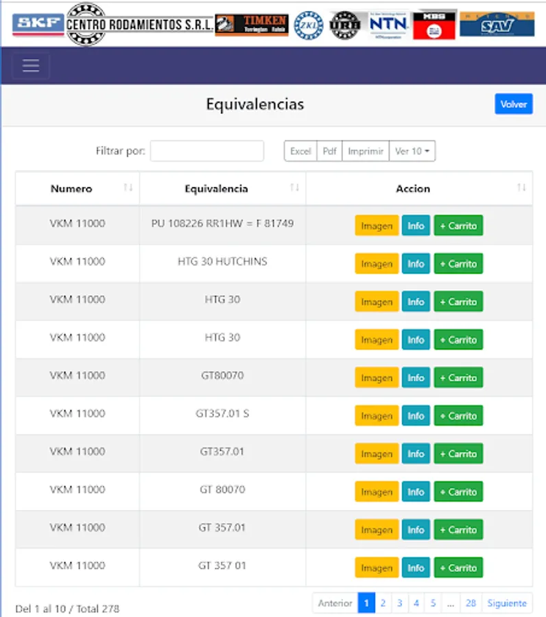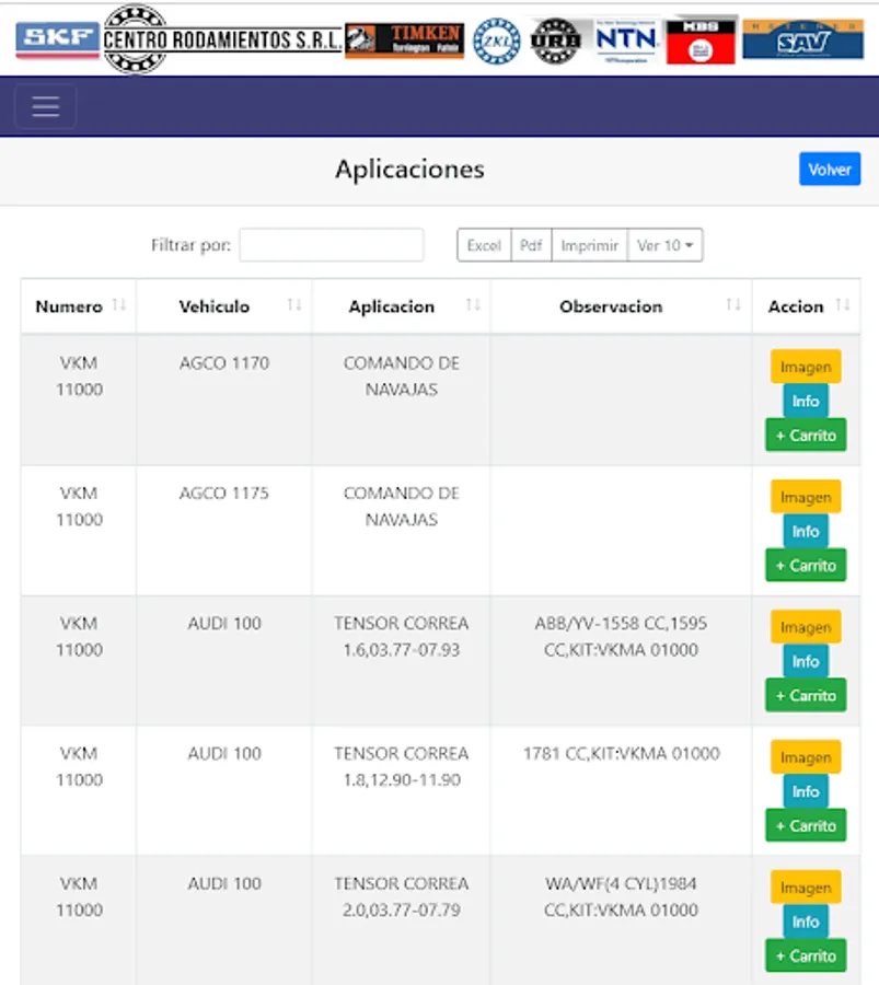 It has a wide catalog of applications, measurements and equivalence of each item, which will allow you to find the merchandise you need.