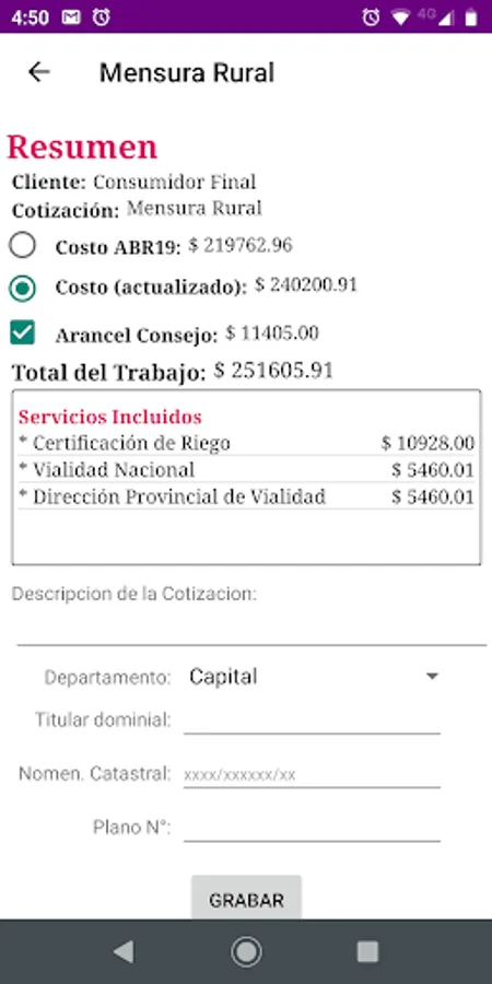 This system, developed by the College of Professionals of Surveying in the province of San Juan, allows the generation of official contributions for professionals enrolled in the College.