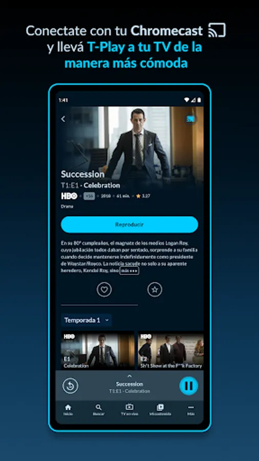 Enjoy our content on all your screens with T-Play. Play your favorite series from your cell phone or watch the game from wherever you are. Watch live TV, premieres and the best classics On Demand.