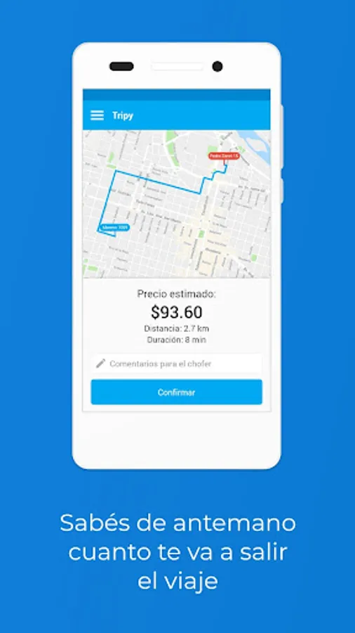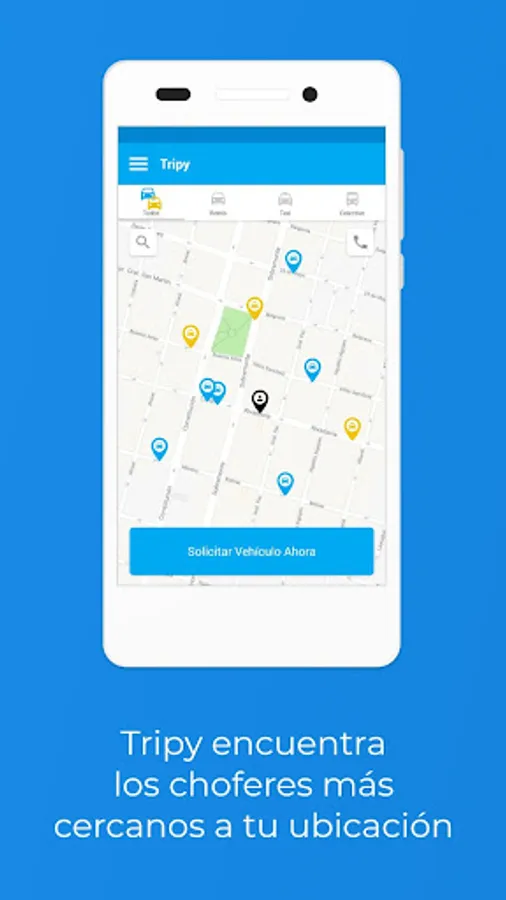 Tripy is the new way to get around in your city, where you can ask for taxis or remises and also check the local bus lines. We put you in contact with the vehicle that you have closest to your current position, showing what type of vehicle it is, to which agency it belongs, who is your driver and even if it carries pets or the size of the trunk.