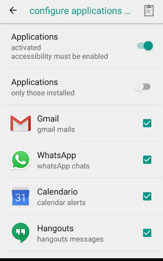 • Voice notifications for applications (gmail, mail, whatsapp, facebook, hangout, etc).