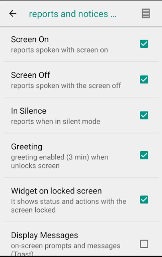 This service captures phone notifications and uses the text-to-speech tool (TTS TextToSpeech) to inform them in spoken form.(brief or detailed)