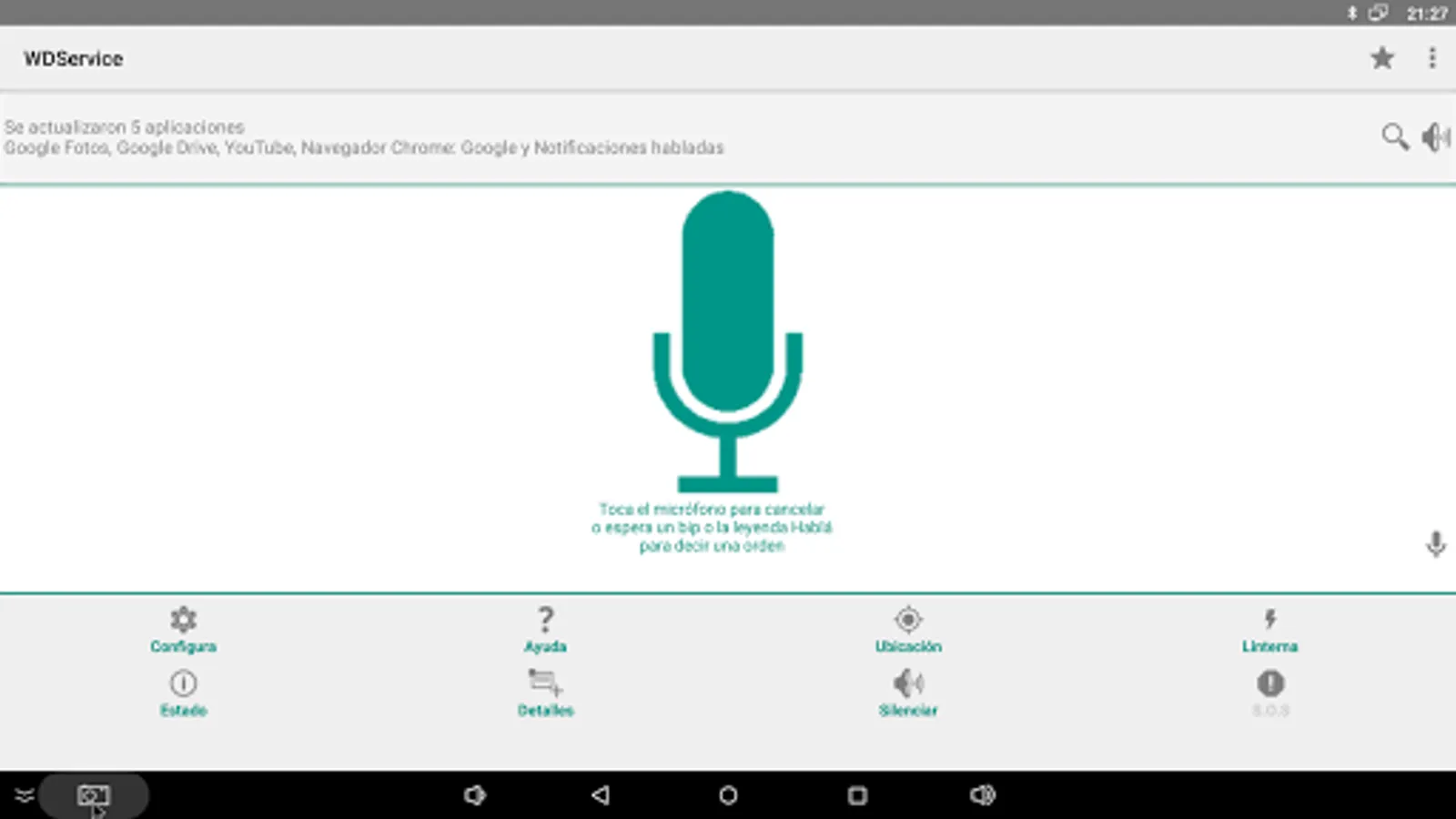 Pre-set voice commands in Spanish , English , Portuguese , Italian and French only using Android voice recognition (Google Voice Search)..
