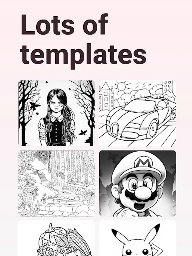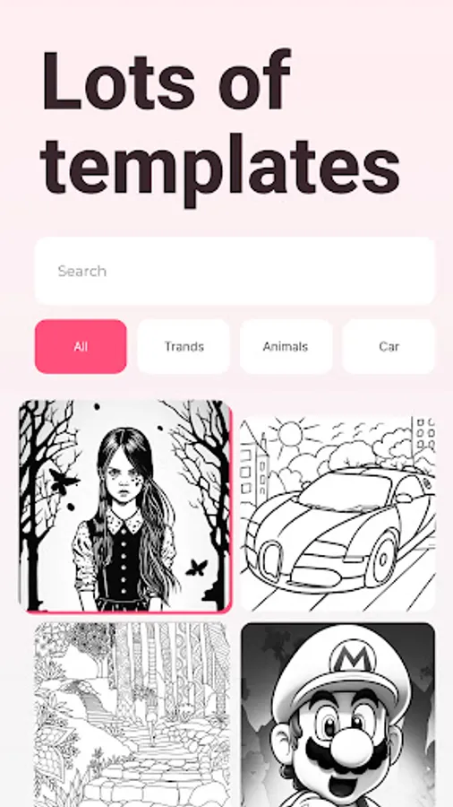 • Lots of tracing templates: Animals, Cars, Nature, Food, Anime etc.
