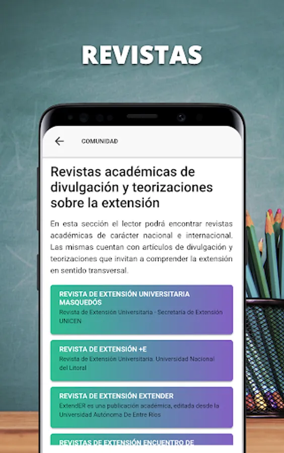 It is the first university extension library in Argentina, and one of the first in Latin America, whose objective is to gather material on the university extension function, including from conceptual approaches and its theorization to the historical construction of this function in all its aspects. It is an open project in permanent collective construction.