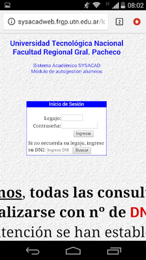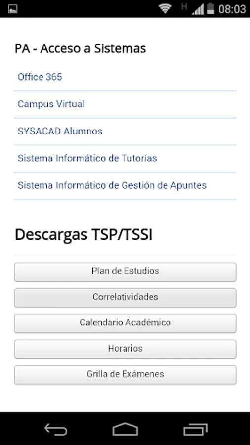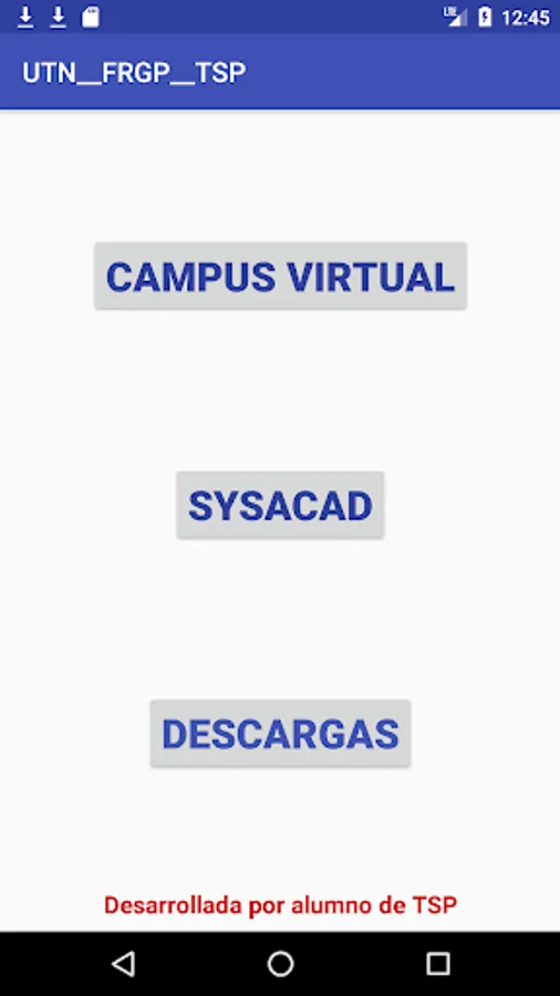 Application of the UTN FRGP, which allows the students of the Advanced Programming Technician to access by means of three buttons, to sites such as the virtual campus, the SYSACAD and the downloads.
