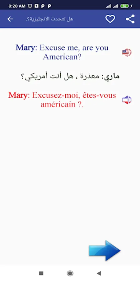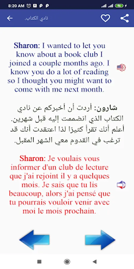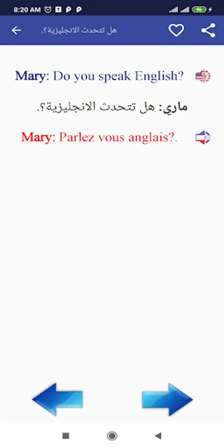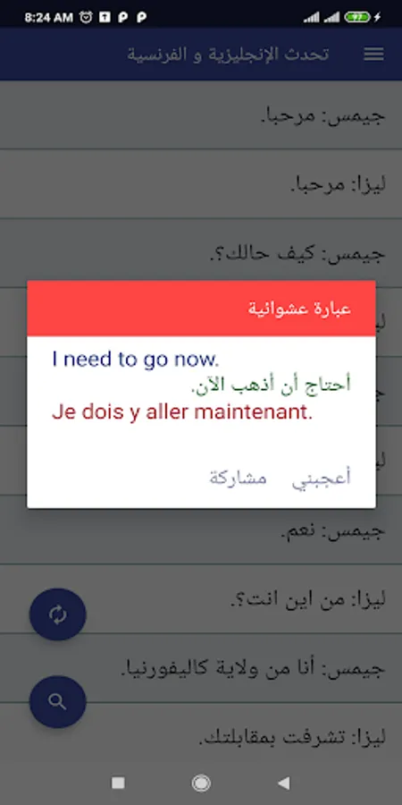 The application spoke and spoke English and French contains a set of common conversations and phrases in addition to the famous words in Arabic and French with phonetic pronunciation and without the Internet means without your connection to the Internet in order to learn English and French.