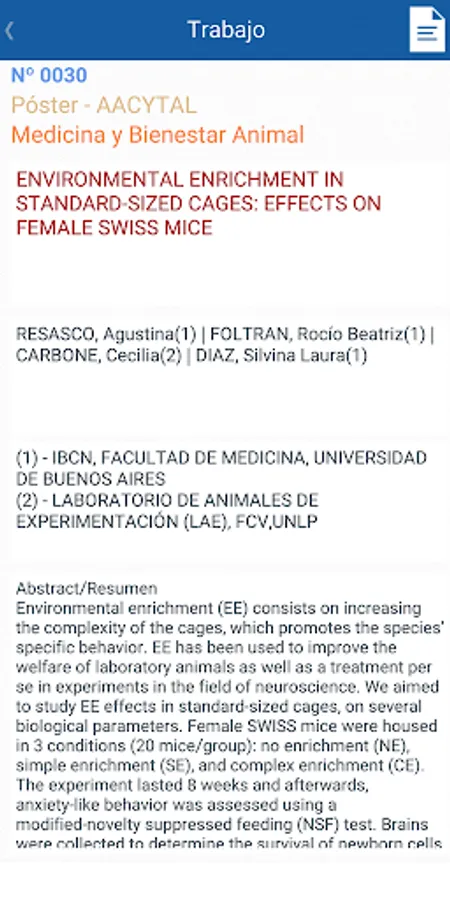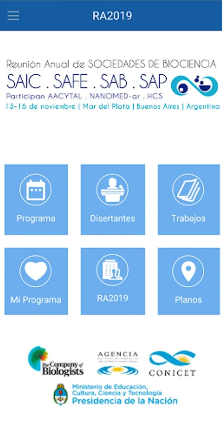 The Argentine Society of Clinical Research (SAIC), the Society of Experimental Pharmacology (SAFE), the Argentine Society of Biology (SAB), the Argentine Society of Protozoology (SAP), the Argentine Association of Nanomedicines (NANOMED-ar), The Association Argentina of Science and Technology of Laboratory Animals (AACYTAL), in addition to the Histochemical Society (HCS).