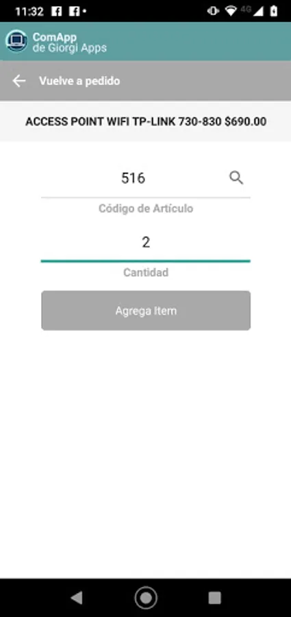 It allows the loading of orders for use with the "Commerce" system of Giorgi Sistemas. Synchronization of customers, articles and orders. Price checking.