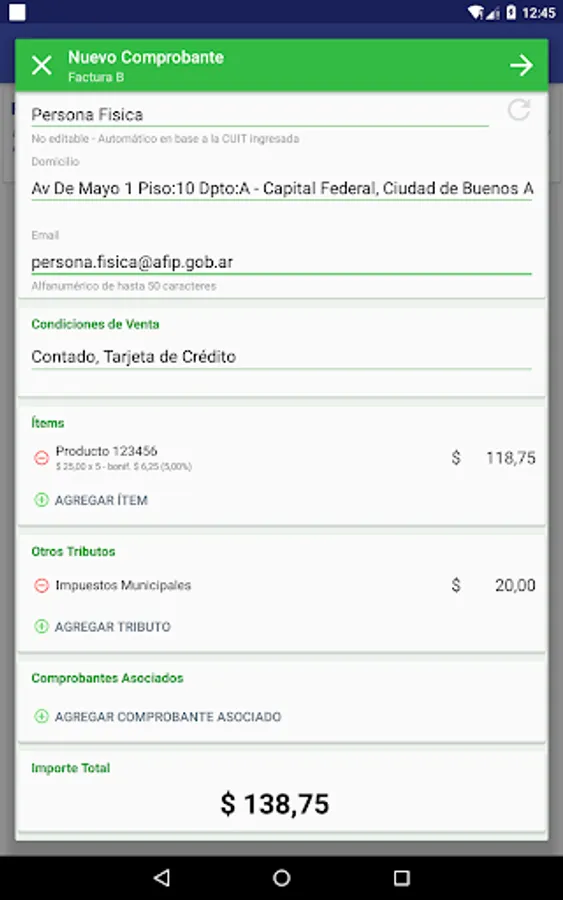 · Manage a list of clients (CUIT, company name, VAT, address, email)