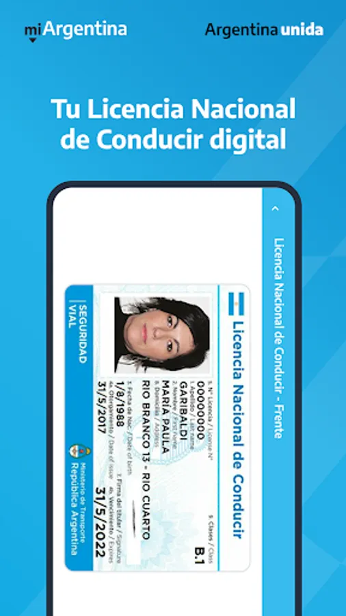 - Your digital credentials: your documents (DNI, National Driver's License, CUIL, etc) in one place to consult them when you need them.