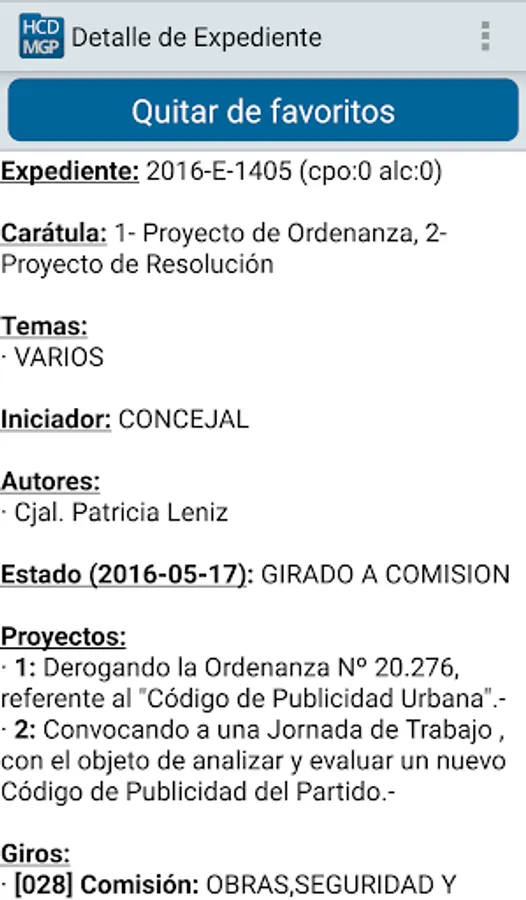 After downloading the application, you can access the Database Records and Notes can make queries about the status of each initiative. Save a history of searches as well as select and mark favorites. If available the digitized text of the original draft of the initiative, the contents are displayed.