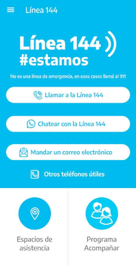 The application allows you to communicate with Line 144 by phone, WhatsApp and email.