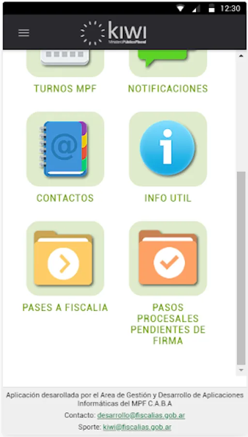 Mobile application through which the employees, officials and magistrates of the Public Prosecutor's Office of the C.A.B.A. they will be able to manage the digital files from wherever they are. Its main objective is to provide the portability and accessibility of the KIWI Judicial Expungers Management System.