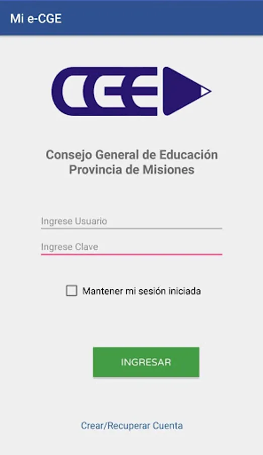 Once the application is installed, to access you must provide the same username and password with which you enter the General Education Council website.