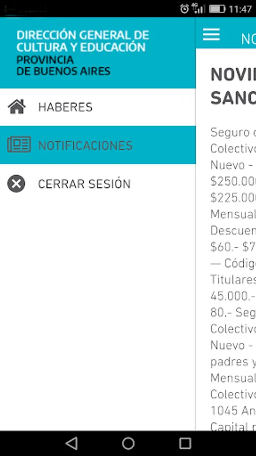 Application that allows state and private subsidized agents of the General Directorate of Culture and Education of the Province of Buenos Aires to consult the perceived assets and the relevant information of each one.