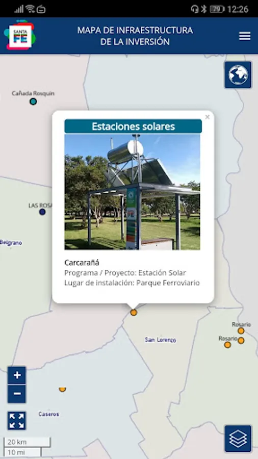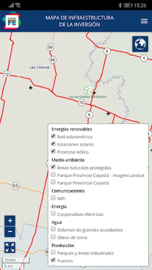 The objective of this app is to provide the potential investor with basic information about the infrastructure and services available in the province of Santa Fe. This information is crucial when making the decision to settle in a certain territory. Hence the need for the investor to obtain official, accurate and concrete data through an agile and dynamic tool like this app.