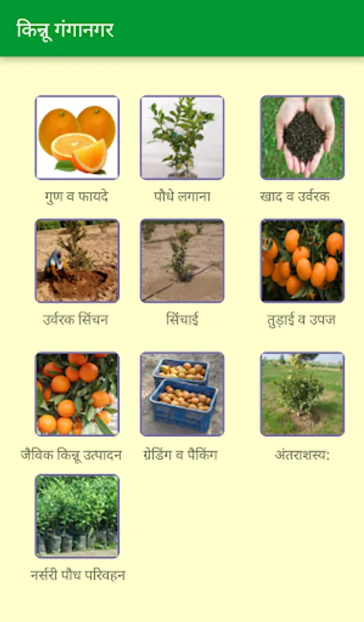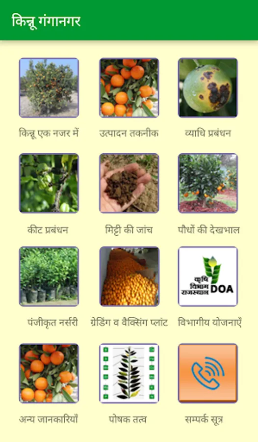 Kinnow is the major fruit crop of irrigated North Western plain zone 1b of Rajasthan. Improve production technologies for better yield of this fruit crop has been developed by this station under AICRP on Tropical Fruits. The production technologies of this crop delivered to the Kinnow growers by Horticulture Department and other agencies. Seeing the importance of ICT in technology dissemination a mobile app on Kinnow fruit crop is KinnowGanganagar app is developed under the project “ICT enabled Agricultural Knowledge Management in North Western Plain Zone 1b of Rajasthan”.