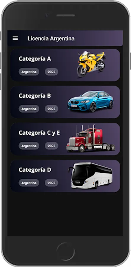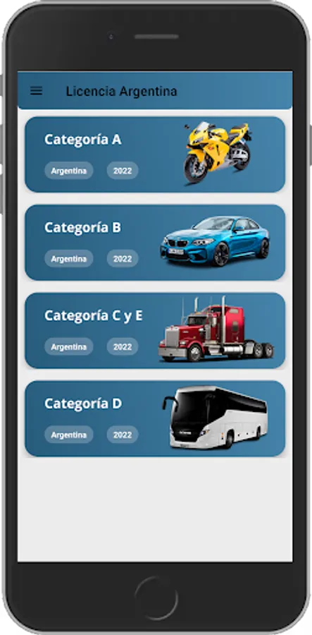 In this app you will find the driver's license traffic signs questions, in the Argentina driver's license exam 2023 there are all the updated questionnaires of the categories you want.