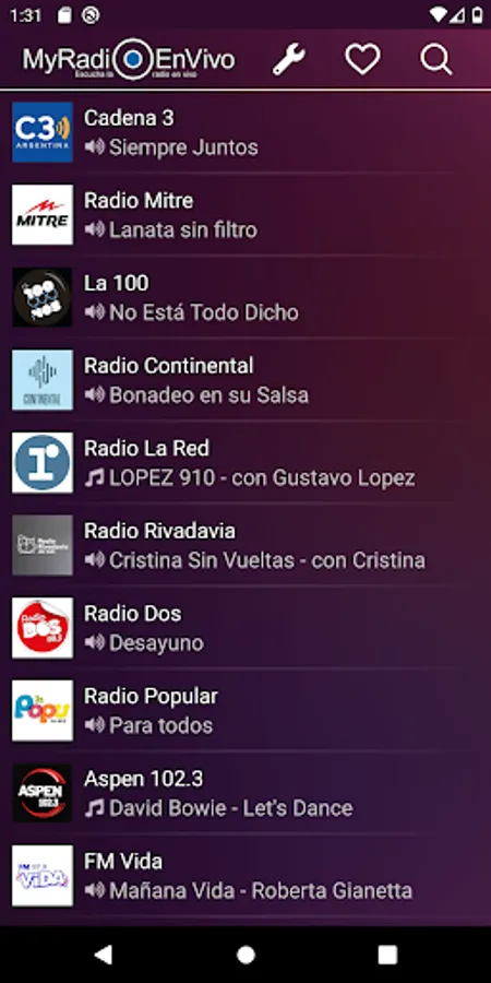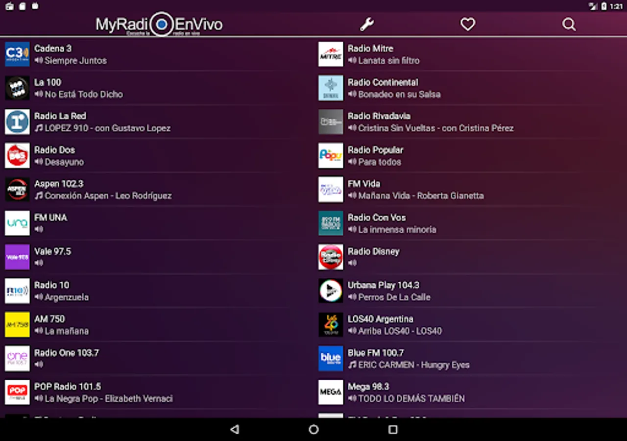 The Android application that is created for our page called myradioenvivo.ar brings together the online radio stations of Argentina and has functions similar to the web interface. Currently you can listen to more than 100 Argentine online radios.