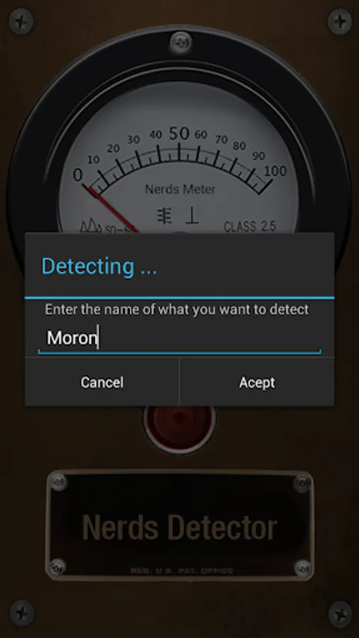 Nerdtector is a very simple app that transforms your phone into a sophisticated detector (and meter) that lets you know which of your friends is the nerd of the group.