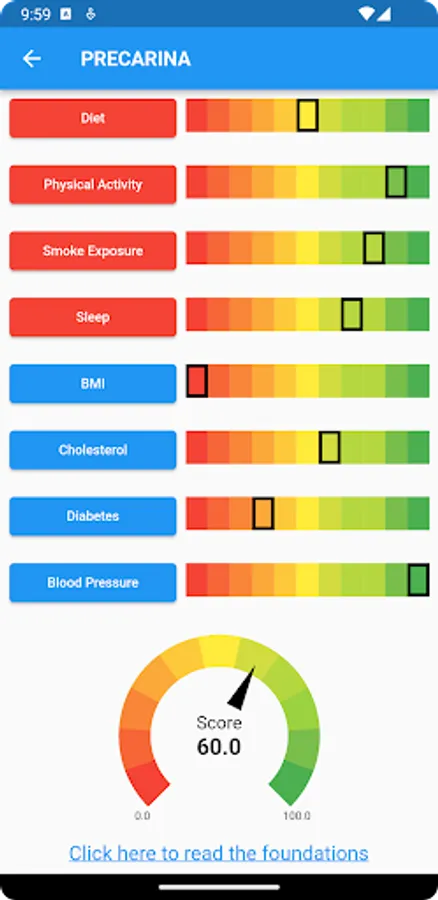 This application calculates the estimated cardiovascular health score (https://www.ahajournals.org/doi/10.1161/CIR.00000000000001078) according to the criteria of the American Heart Association (https://www.heart.org/en/healthy -living/healthy-lifestyle/lifes-essential-8). The purpose of the application is to provide doctors with an estimate of the aforementioned score.