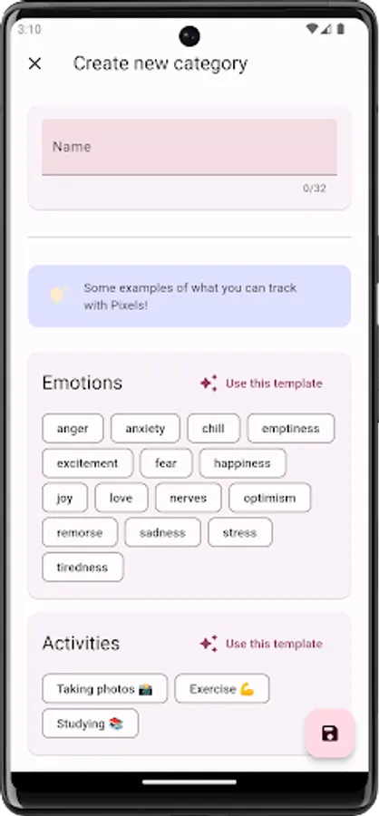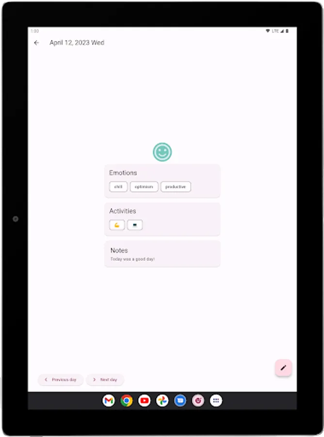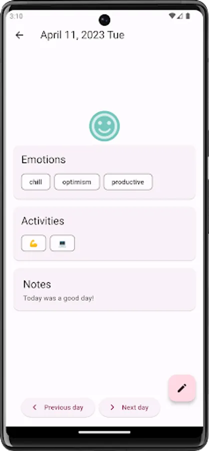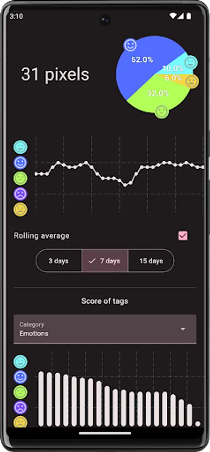 Every day is a Pixel! Track your mood in a simple, quick and easy manner. Log your thoughts through notes and the emotions you felt with tags. Create custom tags for a more advanced journaling strategy.
