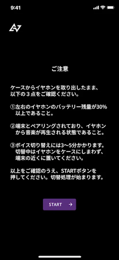 By using this application, you can select and switch the voice guidance played from the earphone body from two types.