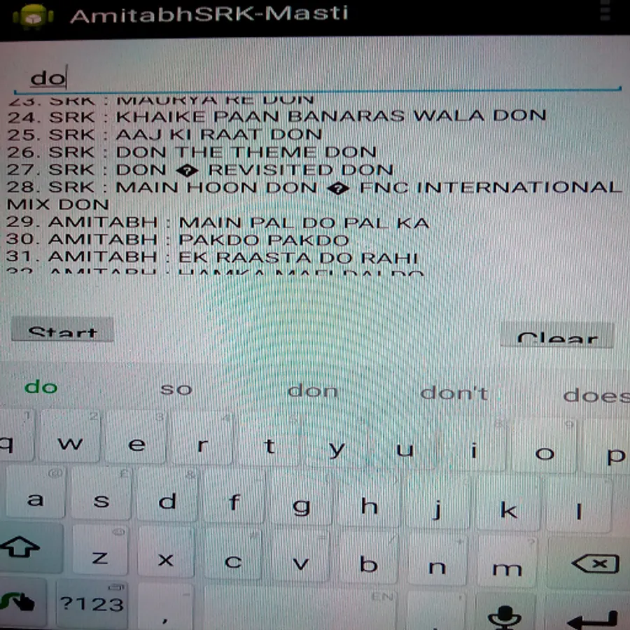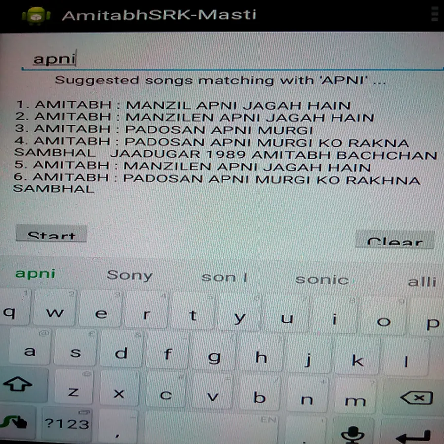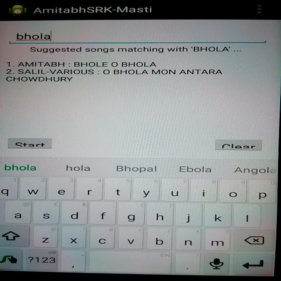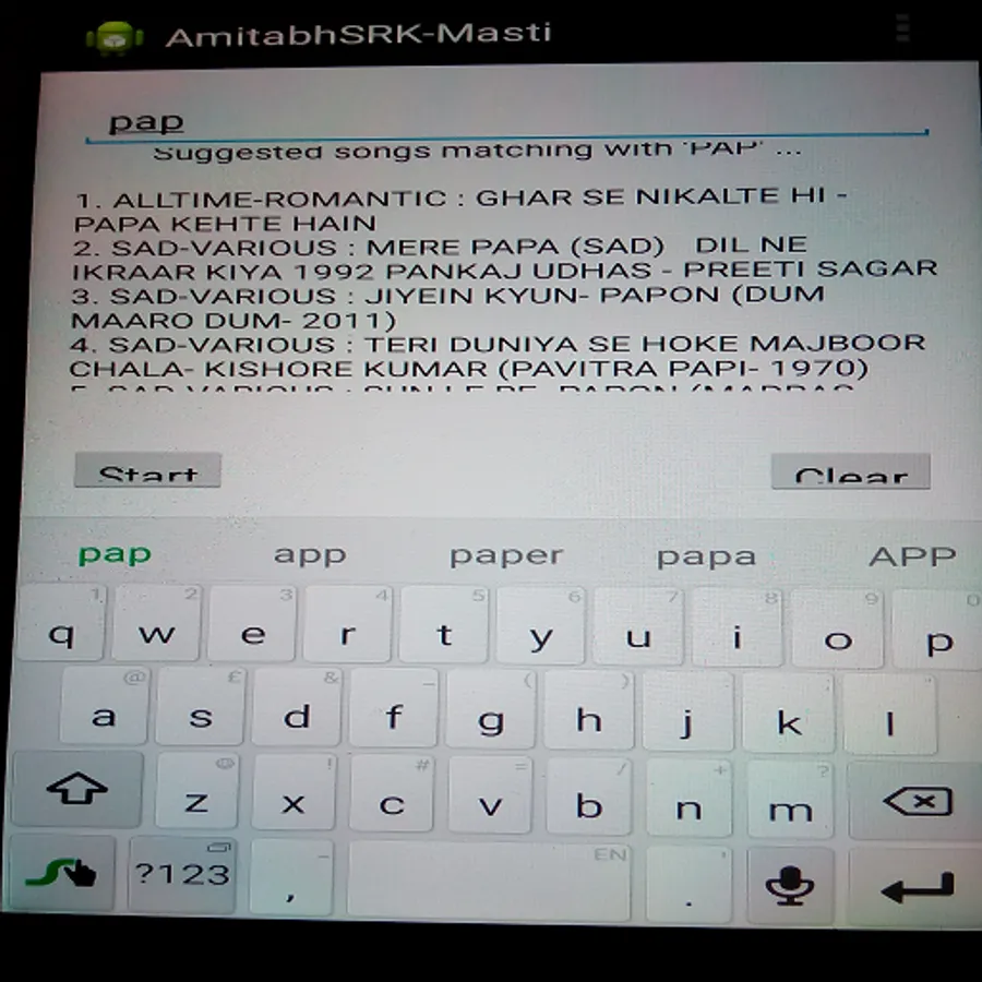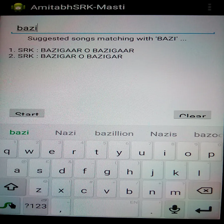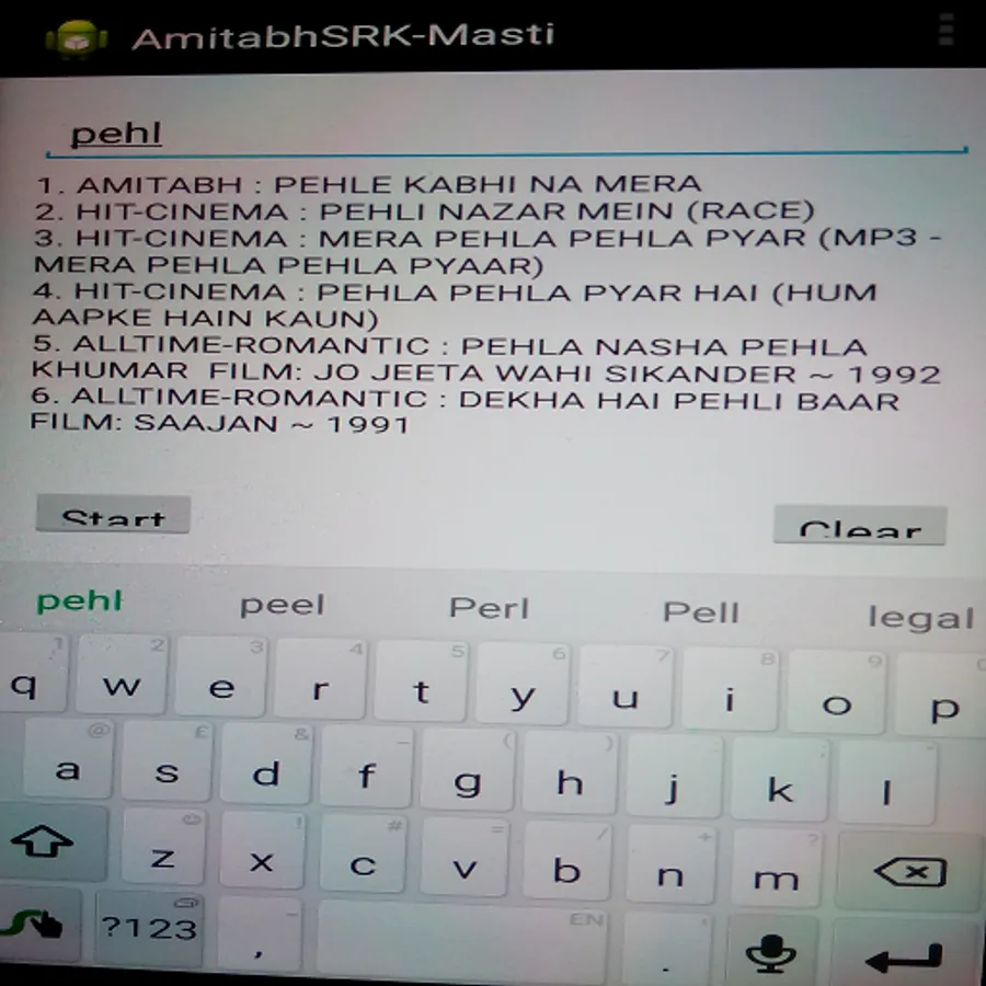 This app finds out the most of the songs from the films of great Amitabh Bachchan (AB) and Shahrukh Khan (SRK). It also gives you some all-time favourite songs of different flavours from the movies of old age era to modern era, depending upon your keyword search.