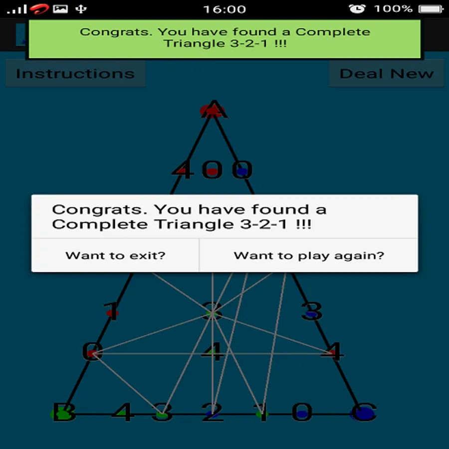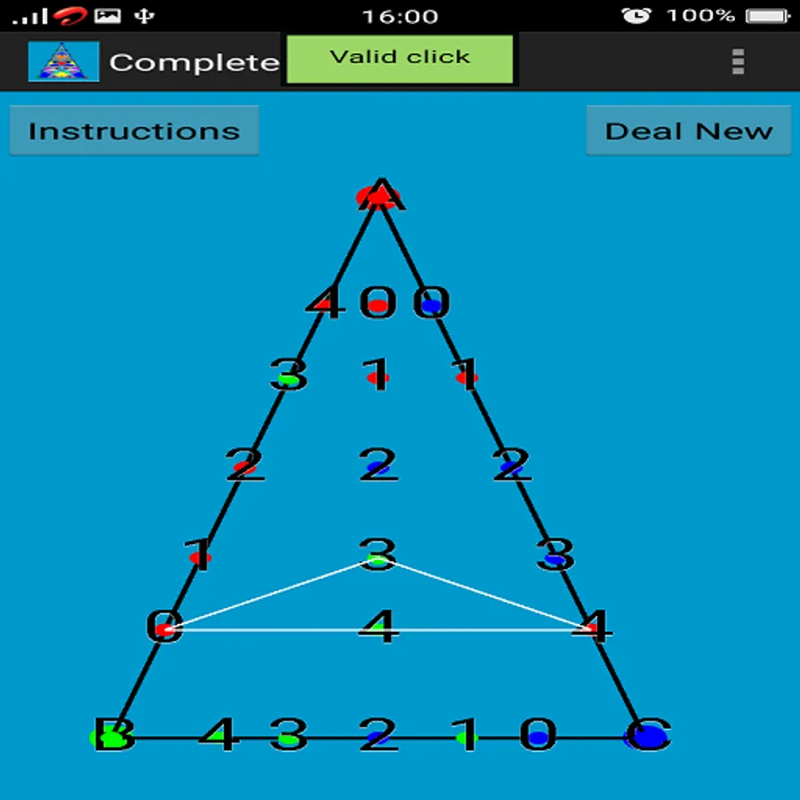 If the triangle formed in this way is a complete triangle (i.e of vertices RED, GREEN and BLUE), game will be over.