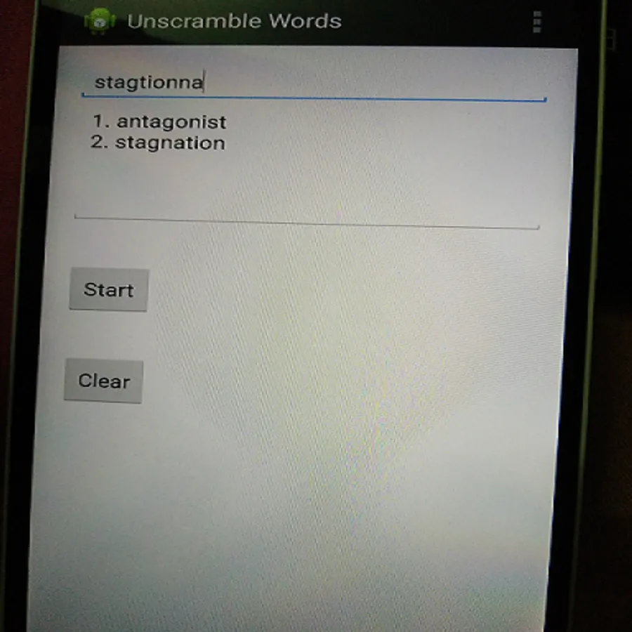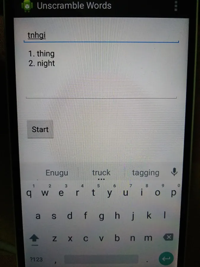 If you enter a word the app will give all possible words after scrambling of the same length as that of the entered word.